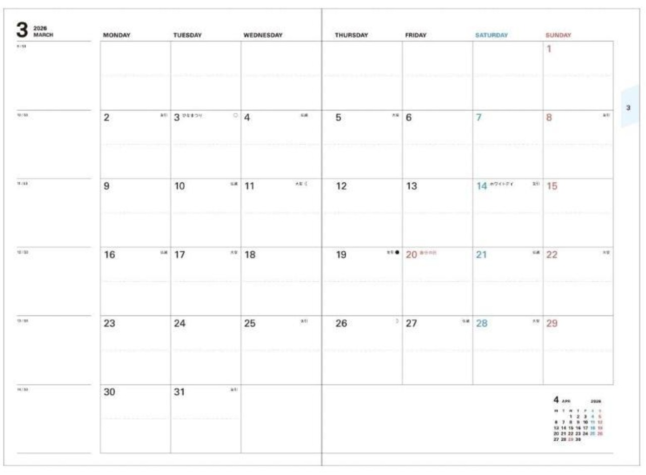 2026年版は、「夕日」の新デザインが登場。鮮やかな色彩と立体感のある筆跡が目を引くおしゃれな1冊です。