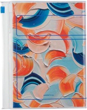 スライドジッパー付きで、小物類を収納できるのもポイント。ペンホルダーも付いています。