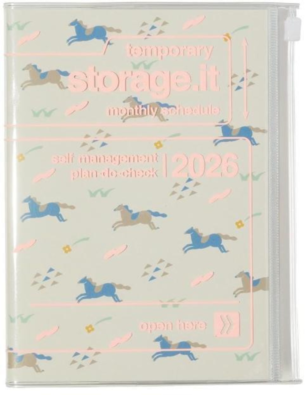 2026年の干支にちなんだ、、草原を走る馬のポップな総柄デザイン。カラーは、ブルー、アイボリー、ミントの3色でラインアップ。