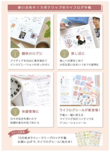 *ライフログにぴったりのブロックダイアリーが新登場。 天気や気温、今日のトピックス欄など初めてライフロ グを始める人にも記録しやすいコンテンツが充実して います。 ライフログが楽しくなるフォーマットです。