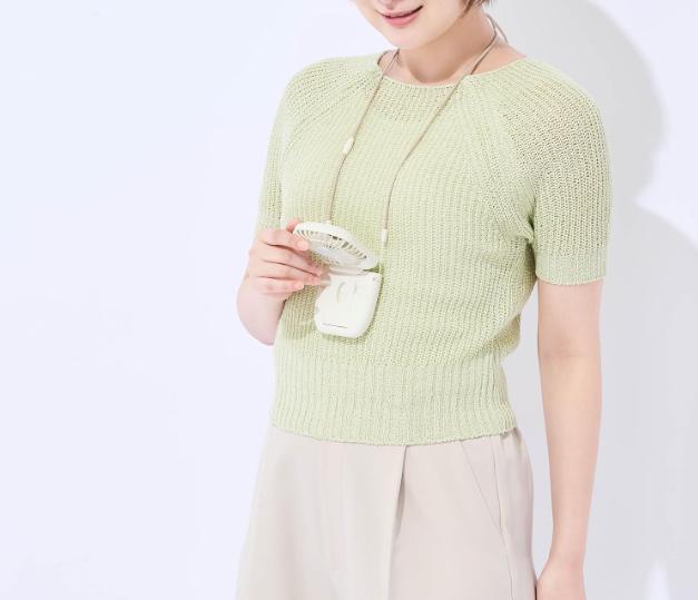 【首掛け】 首掛けストラップが付属。 手ぶらでも涼しい♪ 安定感のあるフラットな形状です。